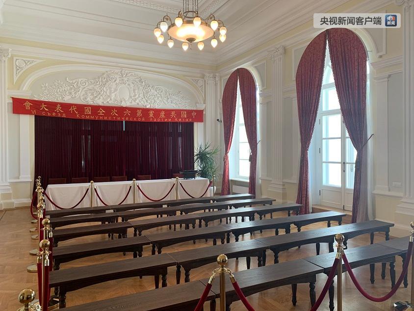 △位于小楼二层的会议室。当年就是在这里,共产国际代表布哈林作了《中国革命与中国共产党的任务》报告,瞿秋白作了政治报告,周恩来作了组织报告和军事报告,李立三作了农民问题报告。(央视记者拍摄)