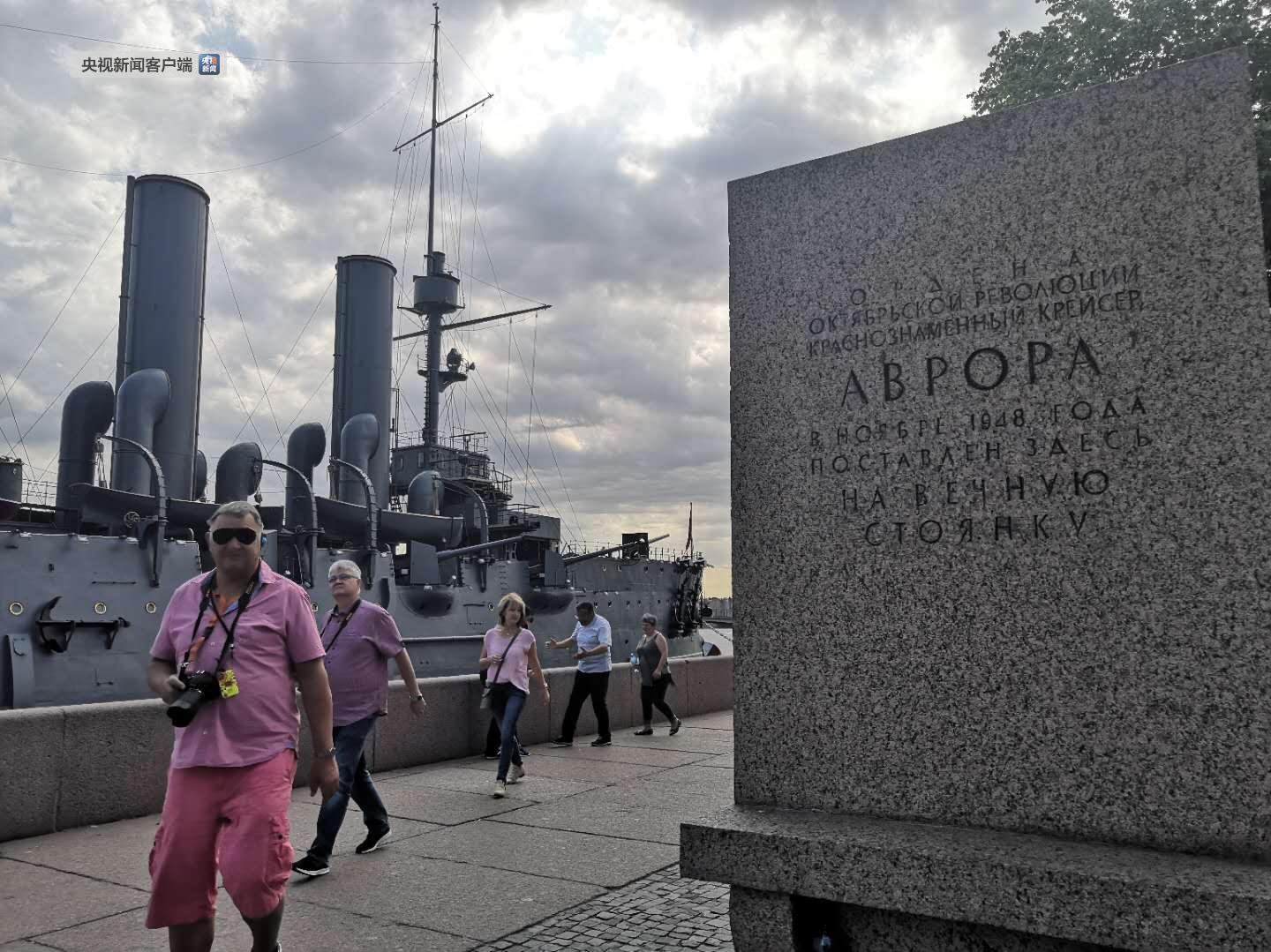 △阿芙乐尔号奉命开炮,发出进攻冬宫的信号,成为了1917年十月革命的象征。阿芙乐尔号至今仍然停泊在圣彼得堡的涅瓦河畔。(央视记者关舟拍摄)