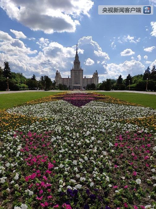 △莫斯科大学主楼,1949-1953年修建。共有32层,高240米,宽450米,是著名的莫斯科“七姐妹”建筑之一。莫斯科大学是俄罗斯规模最大和历史最悠久的大学,于1755年建校。截至2017年,共有13位校友及教职工曾获得诺贝尔奖。(央视记者耿晓龙拍摄)