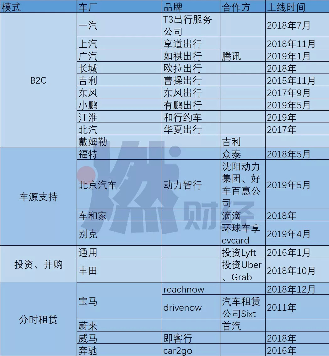 前来搅局的不止上汽一家,从2011年至今共有20家车企悉数布局网约车。不同的是,有些车企以B2C、C2C、分时租赁的方式亲自下场,有些车企则通过投资并购入局,有些则仅仅提供车源支持。
