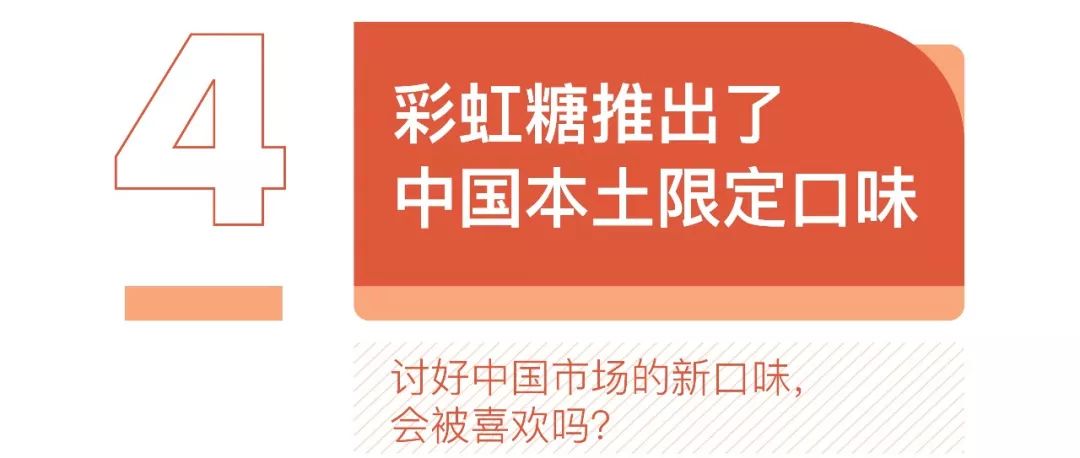 玛氏公司结合花卉和水果元素,新推出了“花花果味”,分别是玫瑰蜜桃、玫瑰荔枝、玫瑰葡萄、茉莉百香果、茉莉西柚味。这是玛氏彩虹糖第一次推出中国本土口味,还邀请王一博做代言人。显然,不管是口味的设计还是代言人的选择,都偏向女性消费者。