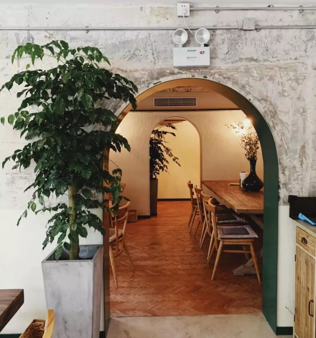 店面以白色为主要色调,配以水泥色墙壁、原木餐具、绿植和黄铜餐具,加上穿着浅灰色围裙的店员,会有自己置身于网红咖啡的错觉。事实上,你也确实可以在这里点到咖啡+肉夹馍的组合。