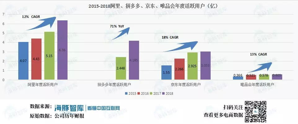 原始数据:阿里、拼多多、京东、唯品会历年财报