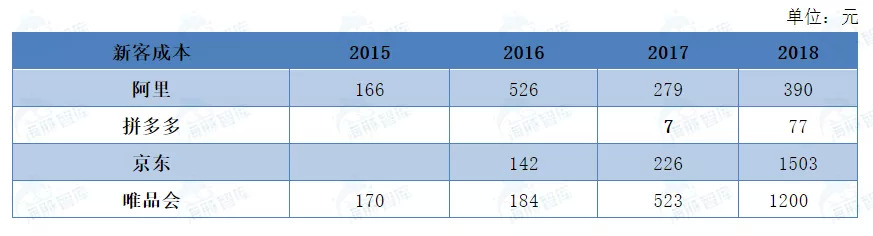 海豚智库观察到主流券商和媒体简单的用市场费用除以净增活跃用户,算出新客成本。显然这是低级的错误!对于大型电商平台的新获客成本通常是稳定上涨的,而不是一下子十倍的变化。我所熟悉的垂直电商新客成本也就控制在两三百左右,对于京东唯品会来说,肯定不会高于这个数。