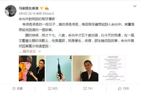 马家辉,中国香港著名作家,李敖的忘年交,经常出现在窦文涛主持的《铿锵三人行》及《圆桌派》中,被称为“文坛梁朝伟”。笔者略略截取了一段他为推广电动牙刷撰写的“软文”,大家可以品一品:
