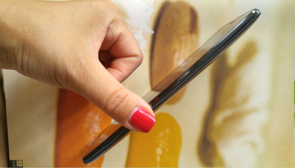 这是一部被掰弯了的手机,但拿在手里并不会感觉到这种“弯”对手感和视觉有过多影响。外形方面和上一代产品G3差别不大,整体尺寸比iPhone 6稍微宽大一些,但还不至于大到iPhone 6 plus那个程度。