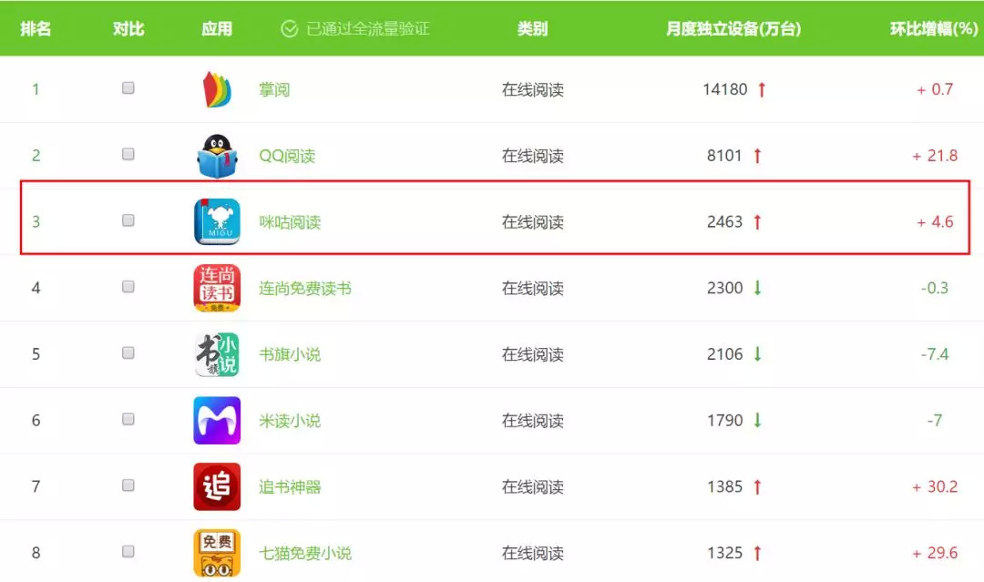 如果以艾瑞数据的“月度独立设备数(该月使用过该App的设备总数)”看移动端产品用户规模的话,目前中移动旗下的移动端“咪咕产品”以咪咕音乐、咪咕视频、咪咕阅读规模最大,其中咪咕阅读在在线阅读分类下仅次于掌阅和QQ阅读,位列第三;咪咕音乐排在在线音乐下的第六,但比起头部平台来说,都有数倍的差距。