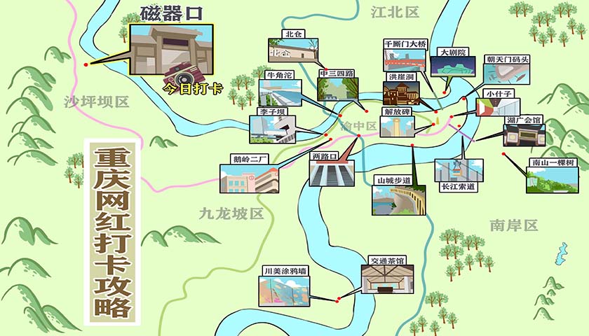 金蓉门旁的磁器口石碑、和美大院、聚森茂都是值得你留下印记的地方。
