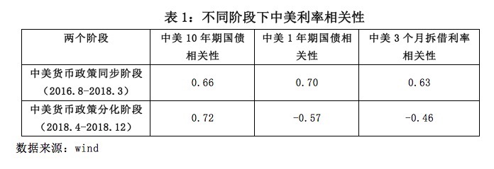 分别计算两个阶段下中美利率的Pearson相关系数,实证发现:不论同步或是分化,中美10年期国债利率的相关性均在0.70上下;但在同步阶段,中美1年期国债和3个月拆借利率的相关性在0.60-0.70,而在分化阶段则有较高的负相关性。因此从统计数据上看,前文的观测得到了支持。