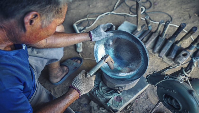 章丘铁锅“臻三环”传承人之一、济南三环厨具有限公司负责人刘紫木介绍,锻打一口锅需要24种不同的锤子,手工锻打的章丘铁锅因工艺精湛、深浅合适、翻炒顺手,享有“锻打三万六千锤,勺底铮明颜色白”的美誉。章丘铁锅的走红,体现了人们对中华传统技艺背后匠心精神的认同与追捧。