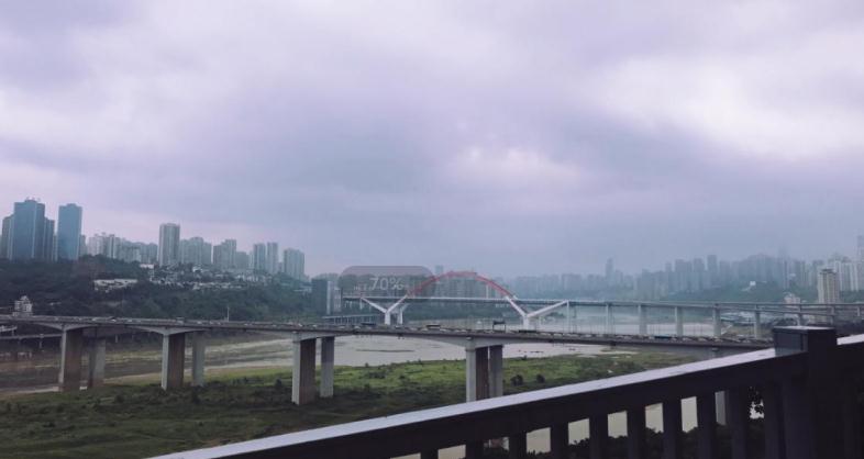 站在栈道边放眼望去,能看到滔滔江水上的长江大桥和菜园坝大桥,对面的江岸上高楼林立,身边是古朴的自然风光,两相碰撞是独属于山城的美。