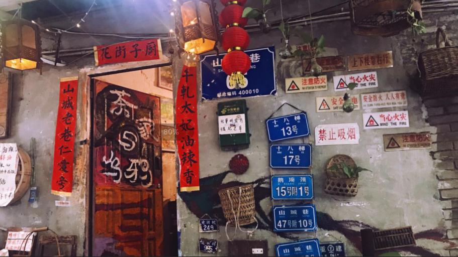 从进入山城步道到步道的尽头,一路上都有着许多别致的小店。或是一对本地老人操持的杂货铺,或是一个溢满麻辣香的火锅小店,或是一个别致的山城小吃店。