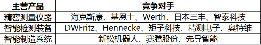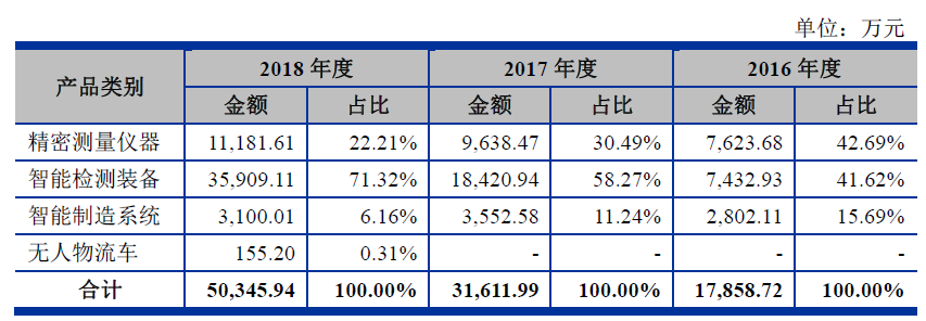 公司目前产品包括四大类:精密测量仪器、智能检测装备、智能制造系统以及无人物流车。