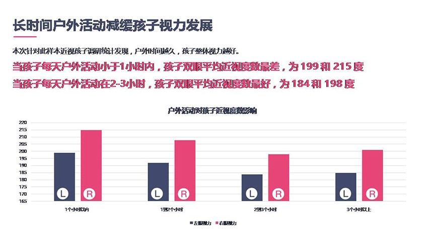 同时调查显示,增加户外活动时间越久,孩子整体视力越好。