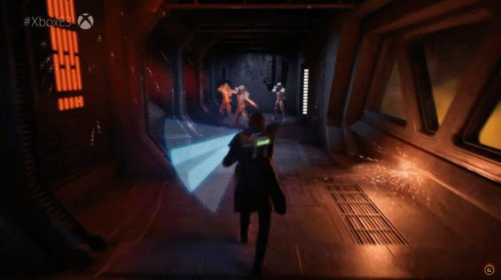 此后的《 星球大战绝地:陨落的武士团 》看着也挺不错的,主要是实机演示画面中主角可以用光剑挡子弹,看起来很装 X ,星战迷们,原力与你同在!