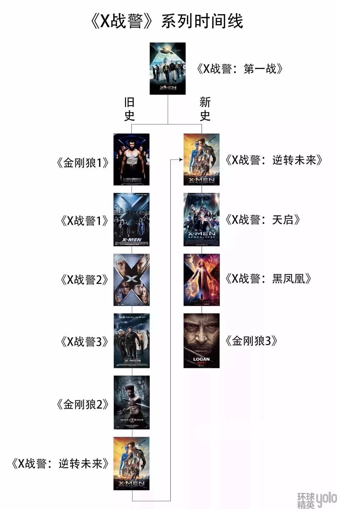 与复仇者系列草蛇灰线的庞大布局不同,《X战警》20年拍摄,衍生出了无数枝杈,上映了11部影片,除X战警三部曲之外,金刚狼三部曲、死侍两部曲作为衍生片发行,还有前传系列《X战警:第一战》、续作《X战警:逆转未来》和《X战警:天启》。