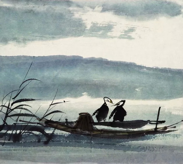 林风眠《鱼鹰小舟》(图片来源:中国美术馆)