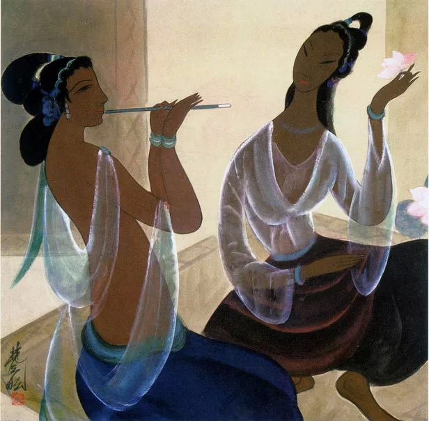 林风眠《伎乐》67cm×67cm(上海中国画院藏)
