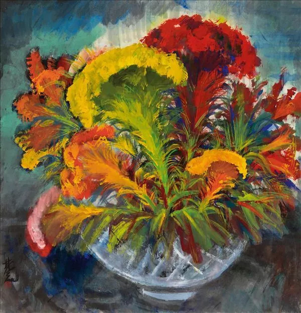 林风眠《鸡冠花》,纸本设色,67.5×65.8cm,成交价:HKD10,180,000 ;RMB 8,327,240 (2012香港苏富比秋季拍卖)