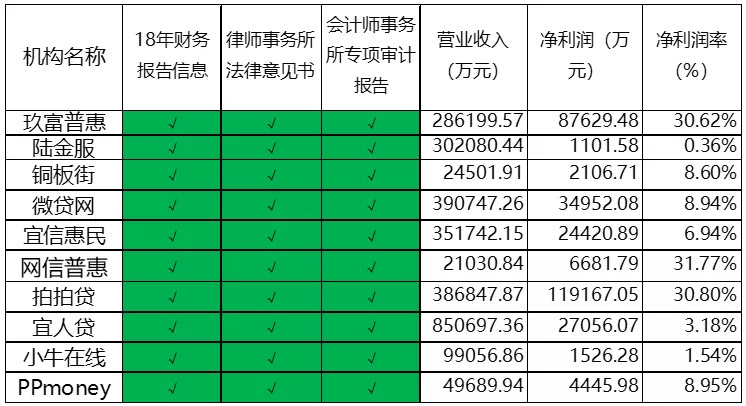 全部10家平台中,2018年度实现的净利润均超过1000万元,净利润超过1亿元的有5家。其中,拍拍贷的净利润达到11.92亿元。