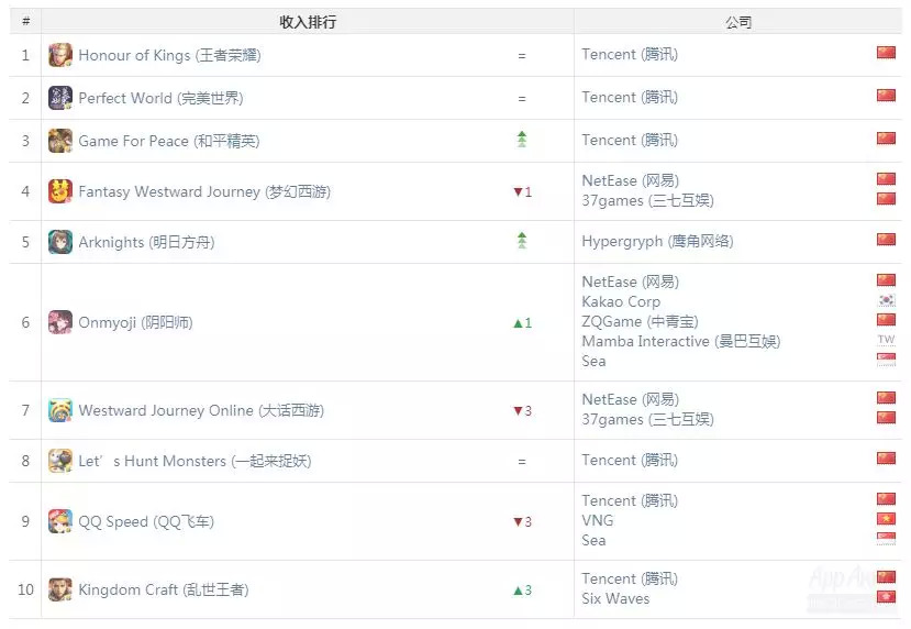 全球iOS收入榜&下载榜:中国手游霸占收入TOP10,《荒野行动》收入环比增长超3成