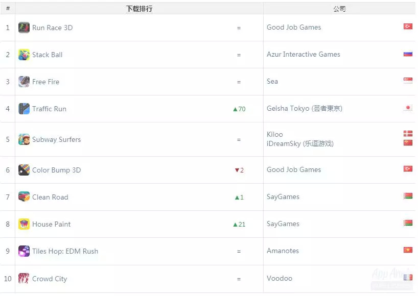 全球iOS & Google Play下载榜:白俄罗斯厂商直追Voodoo,休闲游戏市场格局呈多元化