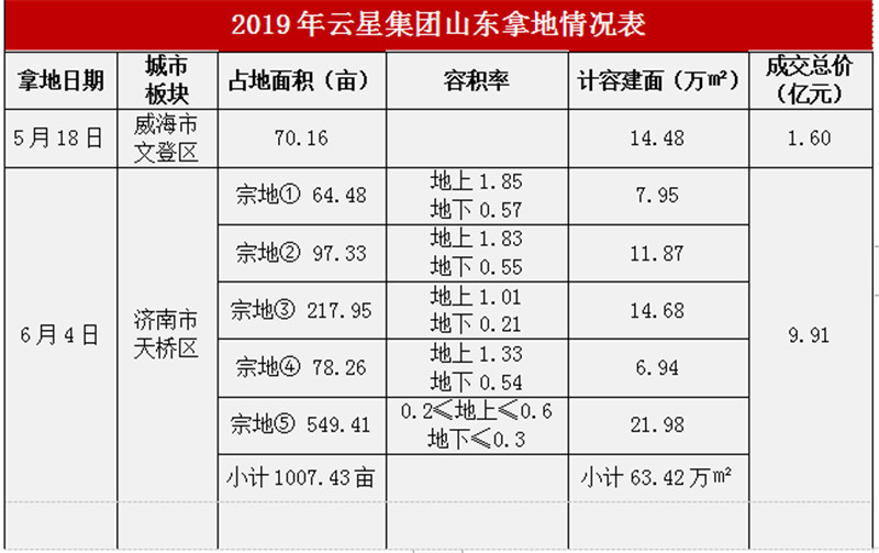 5月18日,云星1.6亿竞得威海70亩商住地,挺进山东