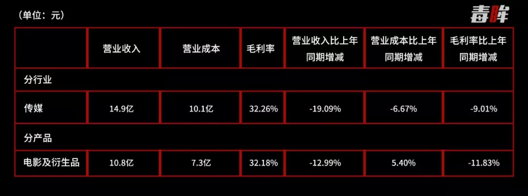 但如此豪华的片单,最终却没有转换成亮眼的业绩。2018年光线传媒“电影及衍生品”业务的收入仅有10亿元,同比减少了12.99%,该业务毛利率为32.18%,同比减少了11.83%。受此影响,光线传媒2018年扣非净利润亏损高达2.85亿元,同比下滑了161.73%。