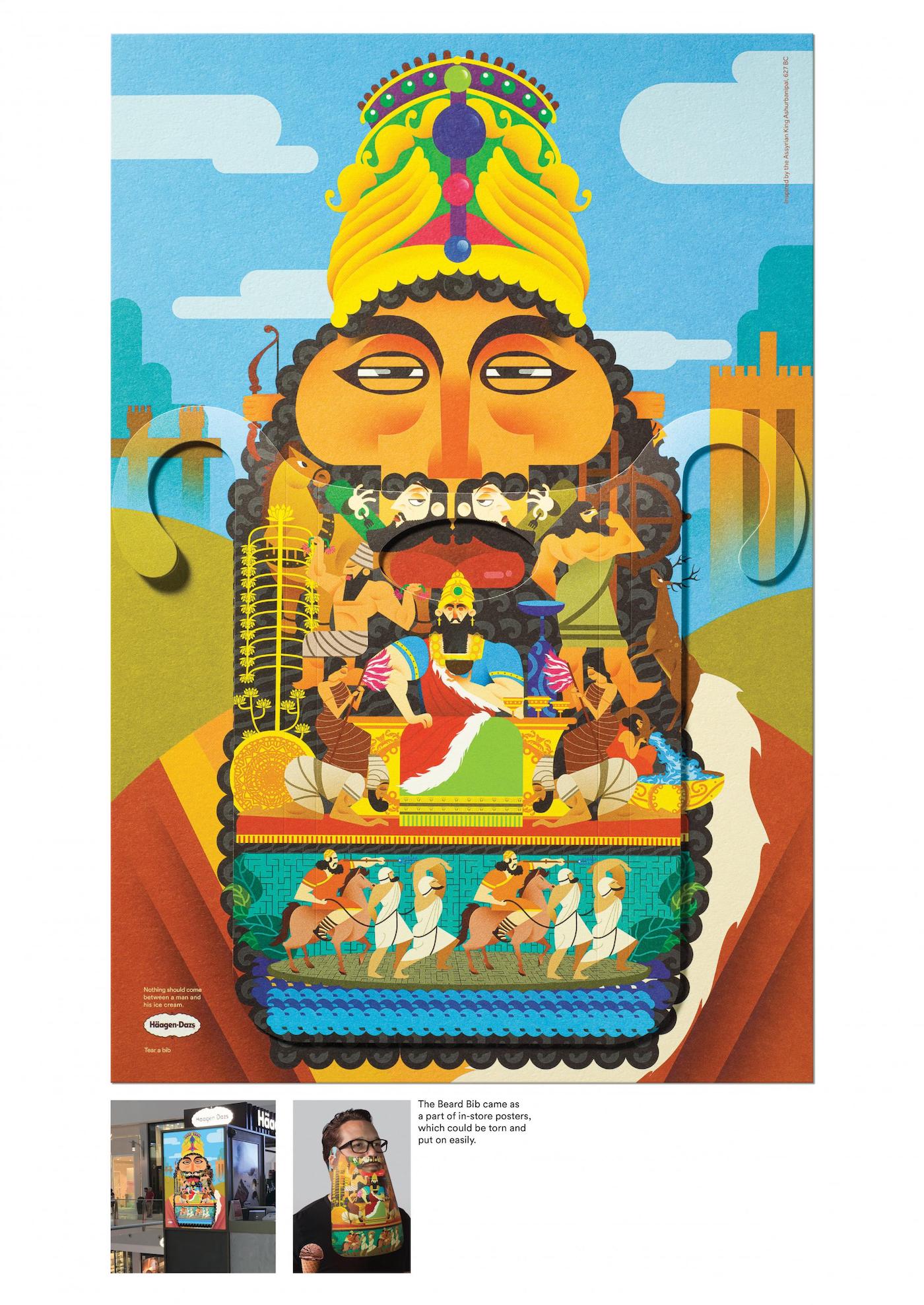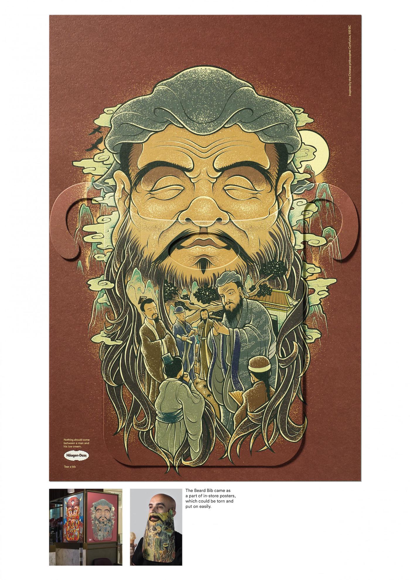 为此,哈根达斯与代理商VMLY&R在迪拜的各大门店推出了胡子面具(Beard Bibs),把面具戴在脸上可以刚好盖住胡子露出嘴,这样蓄须男人们也能自在地吃冰淇淋了。这套胡子面具还有6种不同的设计——戴上以后可以变身法老、孔子、维京人等不同的角色。