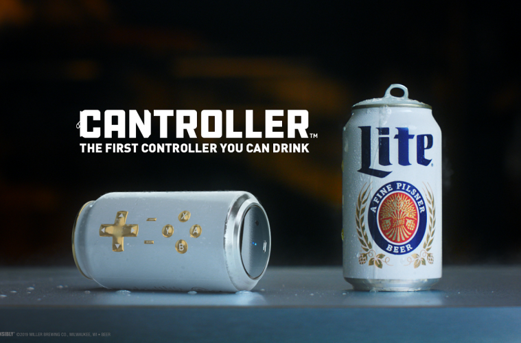 美国的米勒淡啤则为那些爱喝啤酒也爱打游戏的消费者推出了一款能做手柄的啤酒罐(Cantroller )。