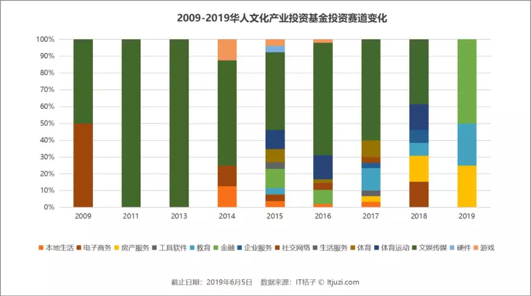 在契合政策的投资之外,CMC 资本也是一家市场化运作的机构。IT 桔子数据显示,截止至 2019 年 6 月 5 日,CMC 资本共计参与 138 起有公开记录的投资事件。如果按照投资领域时间变化区分,华人文化的投资可以分为 2014 年以前和 2014 年以后。