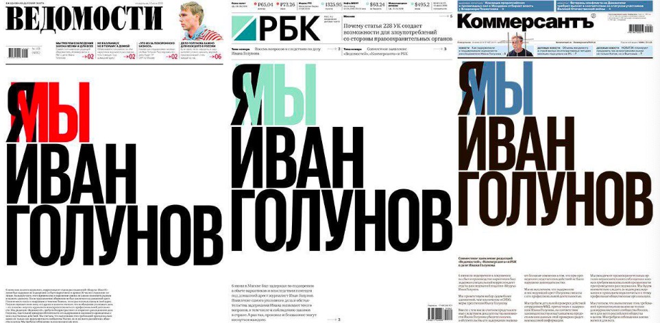 戈卢诺夫被捕的消息在俄罗斯媒体圈引起轰动。三家主要媒体不约而同地用“我们都是戈卢诺夫”作为第二天报纸的头版头条。《莫斯科时报》称,“这在俄罗斯是史无前例的事情”。