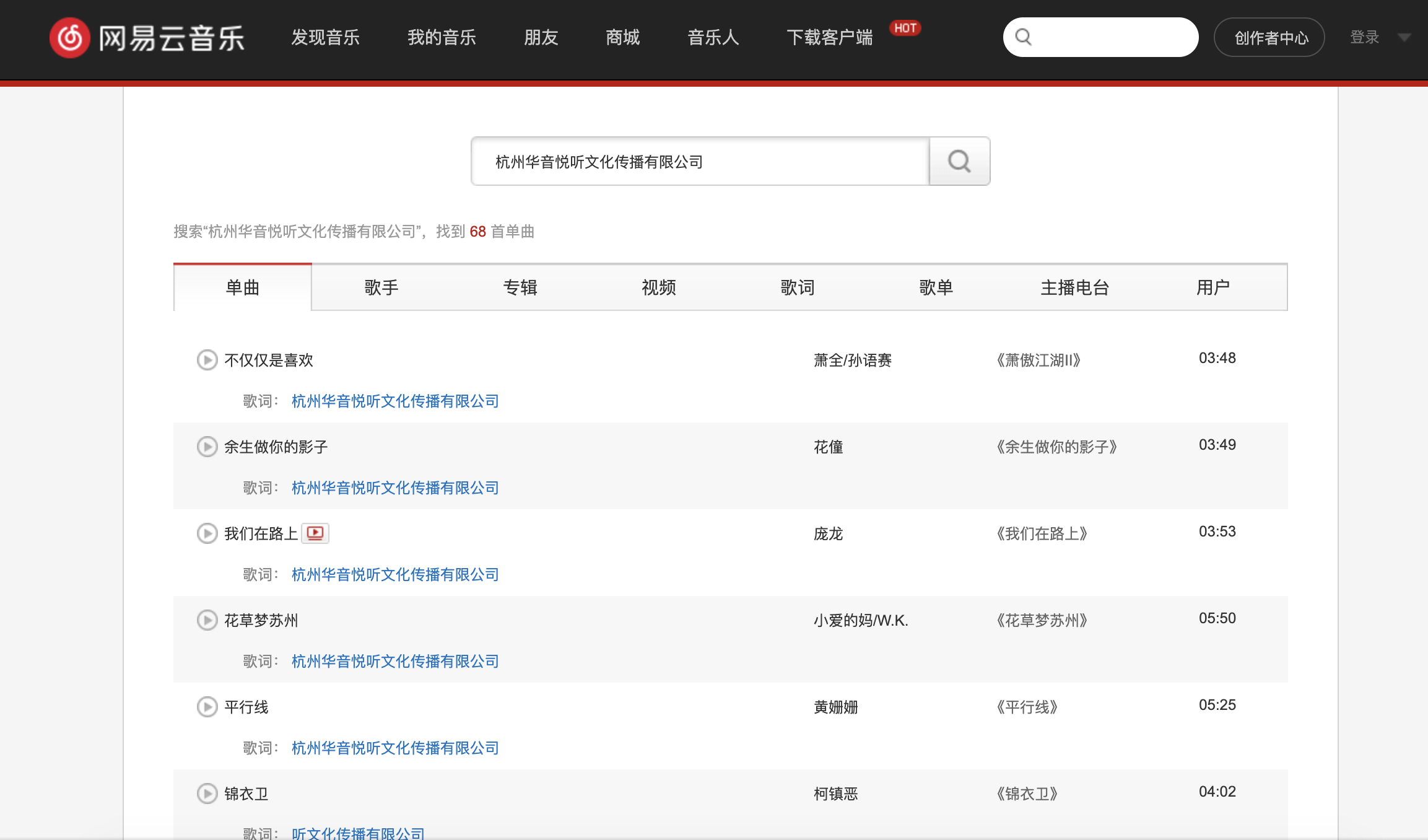 那么,网易云音乐投资“华音悦听”被放大解读,也就不难理解。流传最多的说法是“华音悦听”来自于原九天音乐的核心团队,但在名头之下被掩盖的是,“华音悦听”是一家版权分发性质的团队,在网易云音乐上还能搜到60多首由其发行的作品。如果这一消息成真,无疑预示着网易云音乐将在音乐的制作、发行等环节争夺更多的话语权。