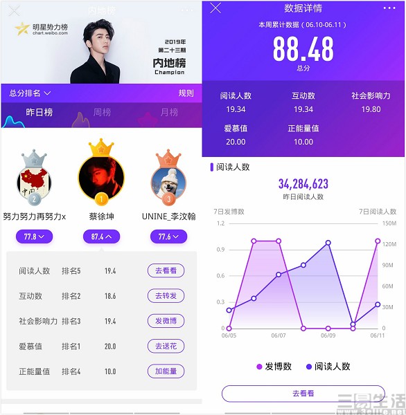 比如说粉圈最在乎的“微博明星势力榜”,在阅读人数、互动数、社会影响力、爱慕值、正能量值五个子项目之中,除了爱慕值需要真金白银掏钱,剩下的全部都是刷数据的纯体力活。显而易见,以热搜为代表的这些大大小小榜单,其实只是微博用来提升用户粘性以及获得营收的工具而已。