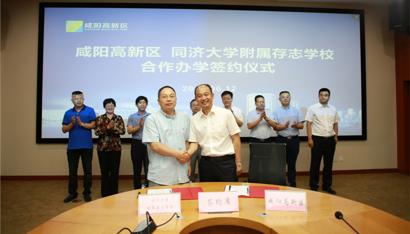 6月12日上午,咸阳高新区管委会主任景雪峰与同济大学附属存志学校董事长李懿签订合作办学协议,标志着同济大学附属存志学校正式落户咸阳高新区。