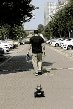 点击跟随将实现云台自动跟随被摄主体(手动控制产品位移),再点击就可以对你实现主动跟随,比如可以用在滑滑板跟拍等场景下,还有这样: