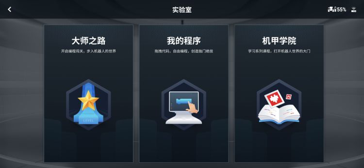 在软件的第三个栏目“实验室”里,拥有“大师之路”、“我的程序”以及“机甲学院”。