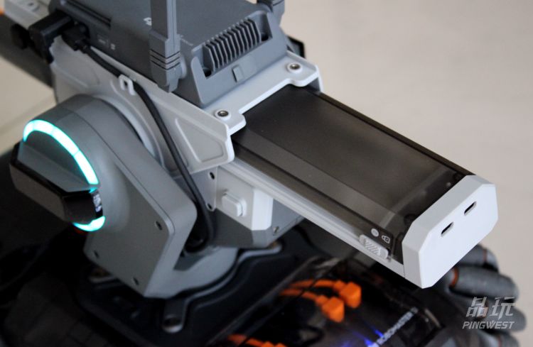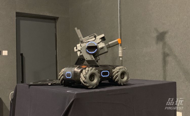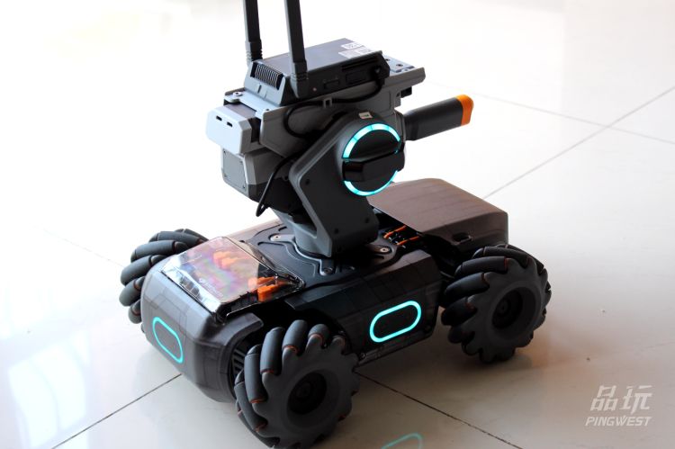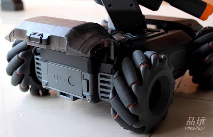 PingWest品玩体验的过程中,发现这个机器人图传连接十分稳定,画面和行动均未出现明显的延迟。机器人速度为快的情况下,需要一定的上手成本,撞墙撞物是必须的,不过据大疆称这台机器人拥有非常优秀的防撞设计,冲击力全部在那套麦克纳姆轮上。