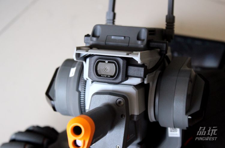 我们自然不用担心这台S1的技术含量,大疆已将一系列的产品技术能力塞入了这台“战车”。比如云台技术像是来自于Robin S,摄像头的外形就像是无人机上搬运过来的,天线和图传模块自然是大疆多年在无人机技术领域上的积累。