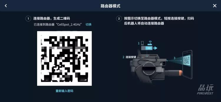 说它像无人机的“变种”,其实在激活页面就可以体现得出来,WiFi绑定,图传连接,甚至在开始之前做一个四轮定位,和无人机激活的方式差不太多。如果使用手机绑定,需要连接占用机器人WiFi,如果两者通过路由器连接,则先需要手机APP激活,机器人摄像头扫描手机APP配对。
