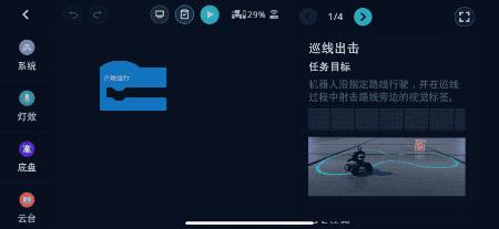 大疆在“大师之路”中设计了9套难易度不同的程序,以便于对这台教育机器人包括系统、灯效、底盘、云台、智能、装甲板、多媒体、控制语句以及运算符和函数体等知识点的理解。