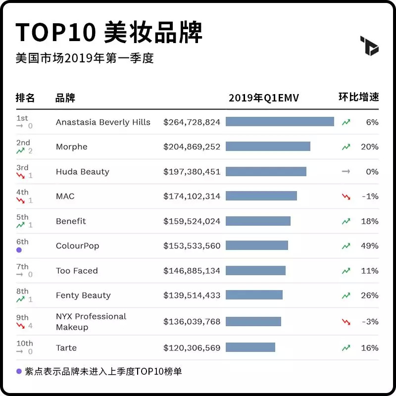 Morphe以320万美元的EMV进入前十,实现了领先的193%的季度环比增长。