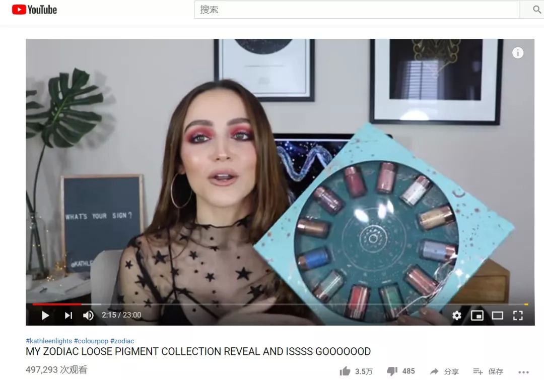 该品牌得到了其KOL合作项目的参与度,包括与长期和Youtube博主凯瑟琳 福恩特斯(Kathleen Fuentes)合作所推出的新的Zodiac Loose Pigment眼影系列。