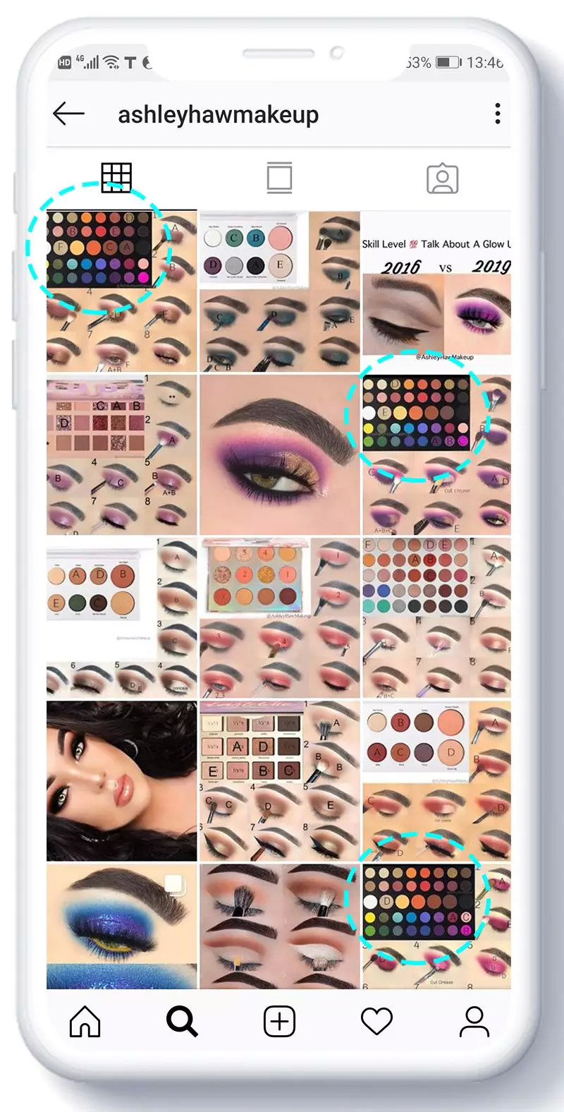 在眼影盘的64位KOL中,有51位不止一次提到它,是提及次数最多的,崇尚彩妆的化妆师Ashely Haw (@ashleyhawmakeup)在Instagram上分享了40条内容。