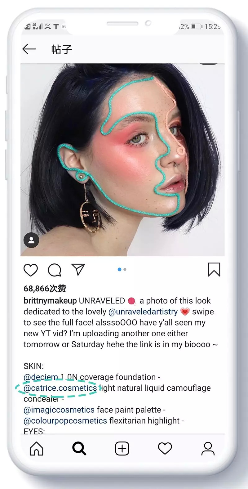 遮瑕产品的EMV主要来自化妆师布里特尼(Brittny,@brittnymakeup),她用其化了15个妆容,为品牌贡献了53.6万美元的EMV。
