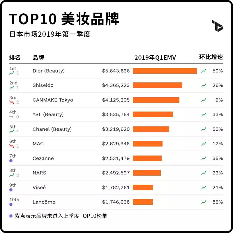 尽管巴黎欧莱雅(L’oreal Paris)没有进入日本市场的TOP10美妆品牌之列,但其EMV(160万美元)季度环比增长113%,超过了前10名平均34%的增幅。