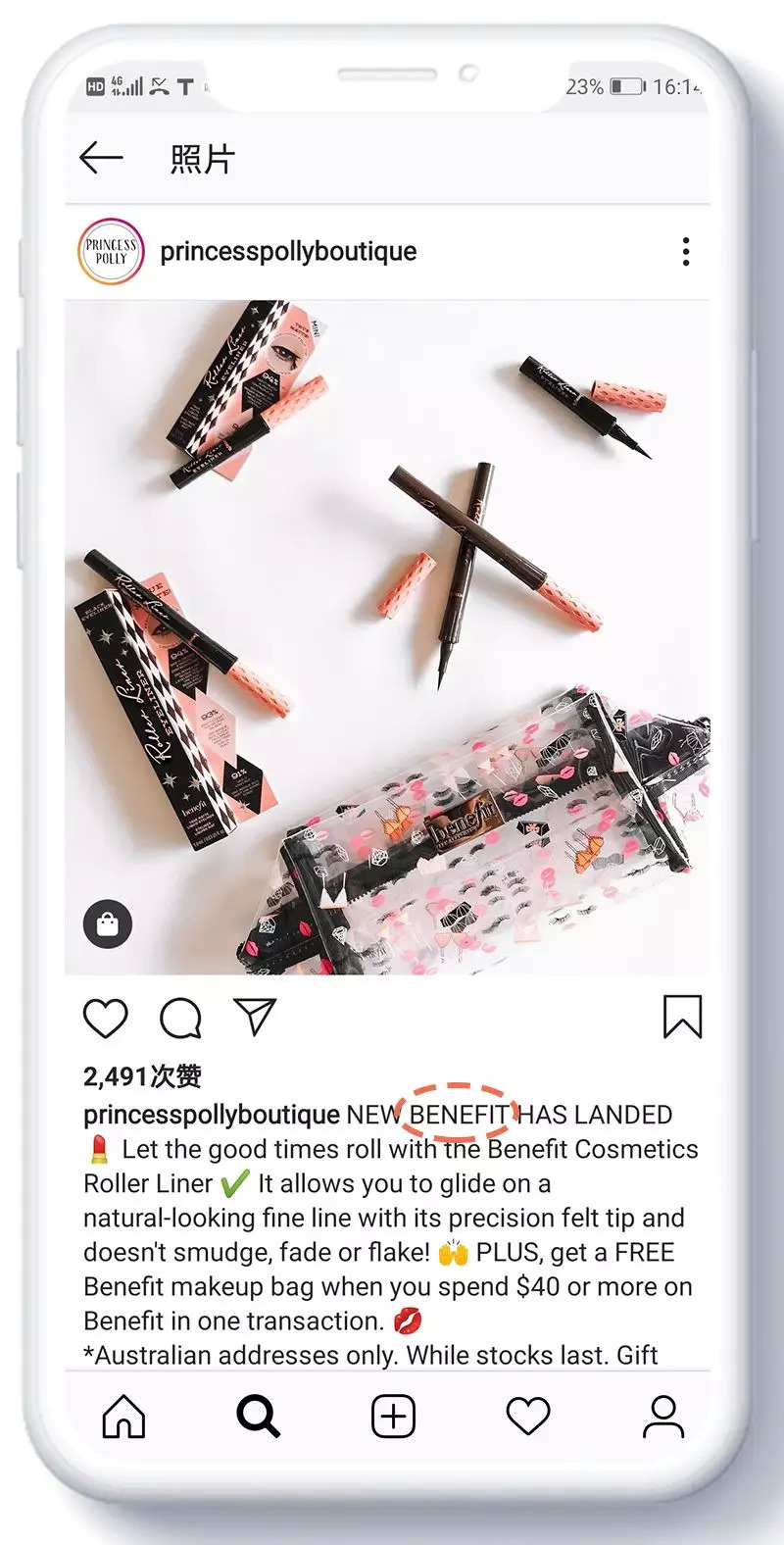 该公司收入最高的代言人、零售商Princess Polly (@princesspollyboutique)通过两条软文Instagram创造了17万美元的EMV。总的来说,该产品获得了48位KOL的支持,其中包括化妆师安娜斯塔西娅(Anastasia, @makeupartistanastasia),她在三个妆容中使用了这款眼线笔(3.7万美元的EMV)。