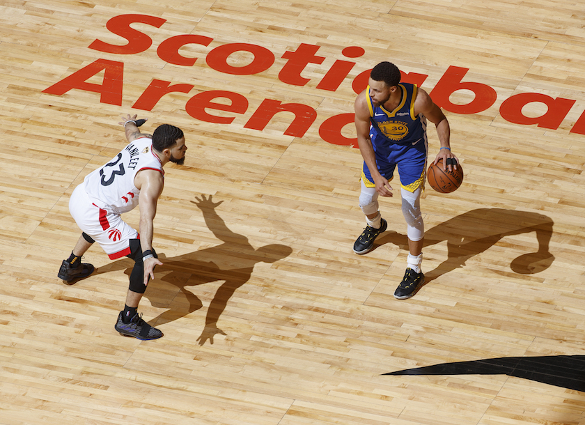范弗利特在总决赛中防守库里。(图片来源:视觉中国)