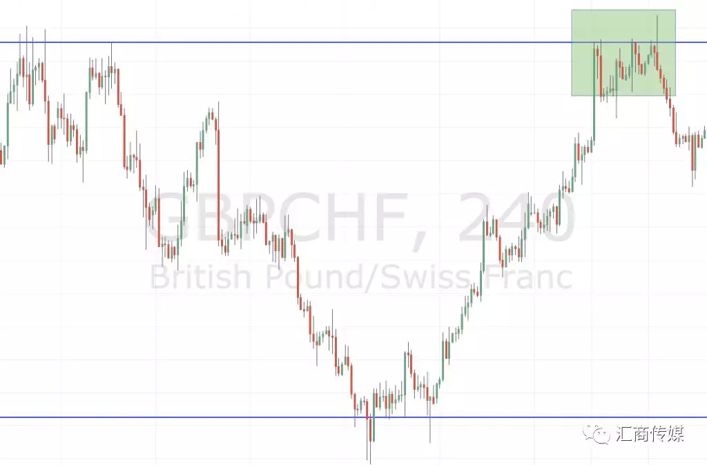 上图:一开始买家具有优势,价格不断上涨,最终触及阻力区,但是后续力量不足,卖家这时占了上风,将价格拉回来,但是买家还没放弃!于是价格不断重复这个过程...