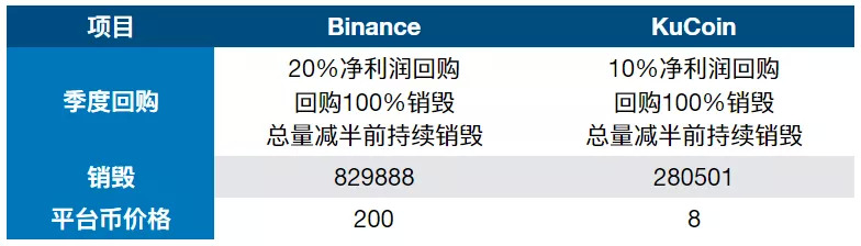 我们以 Binance 的 2019 年第一季度的回购数据和 KuCoin 的 2019 年第一季度回购数据进行相对估值对比。区块律动 BlockBeats 认为,回购销毁数据可以真实地反映交易所的真实经营状况。